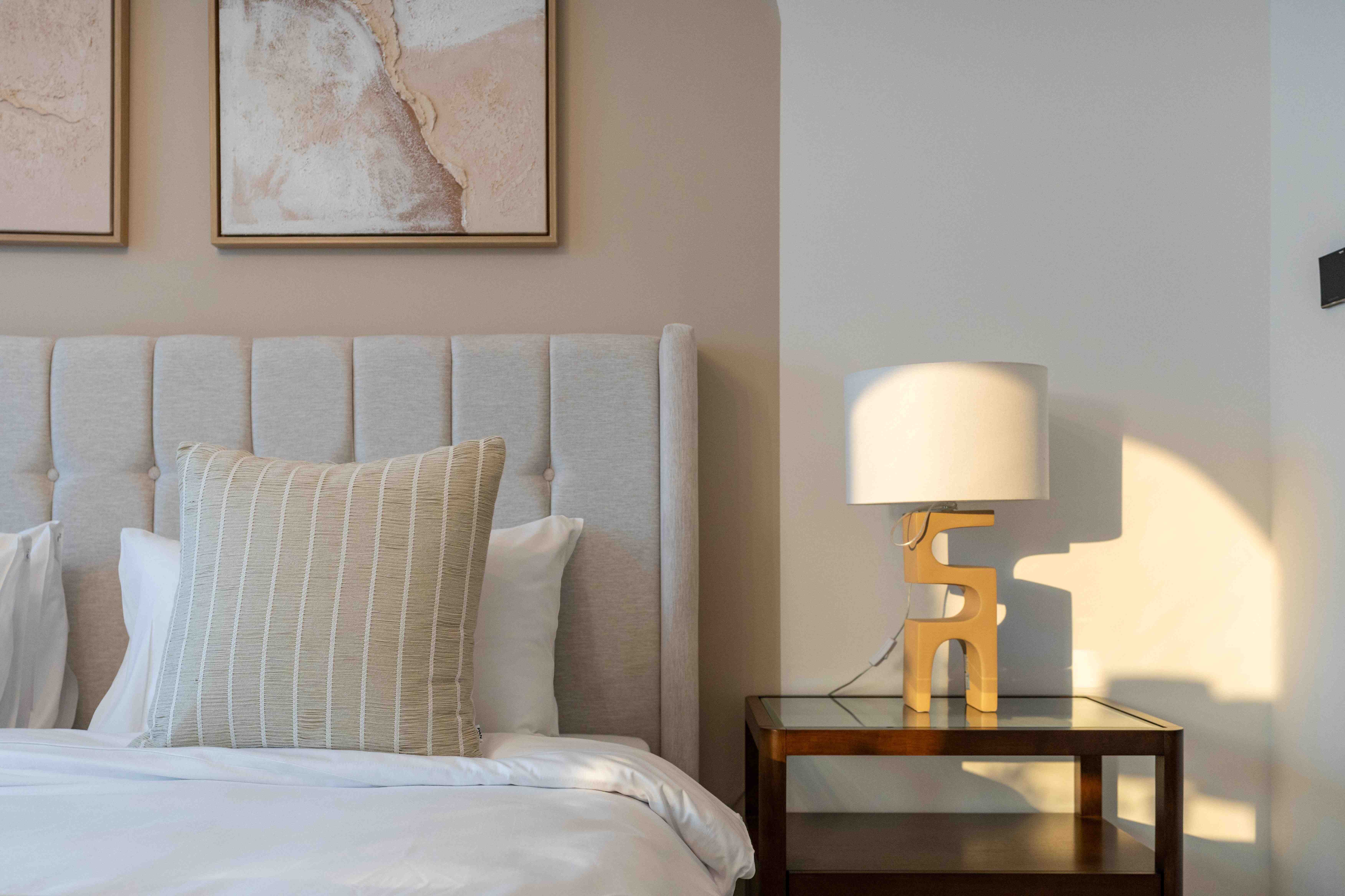 Comfortable Bedroom: A plush queen-sized bed, ample storage, and soothing decor for a restful sleep.