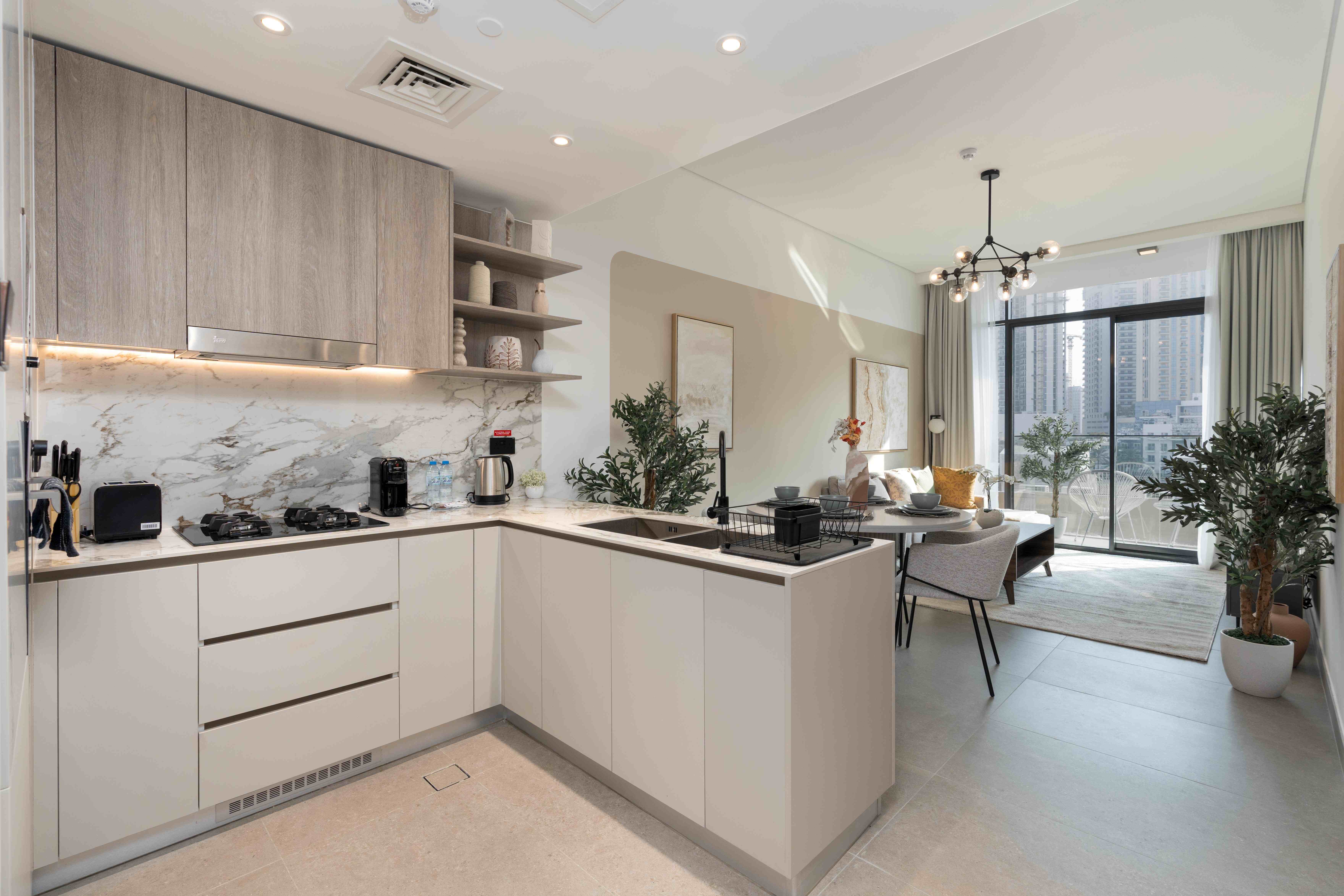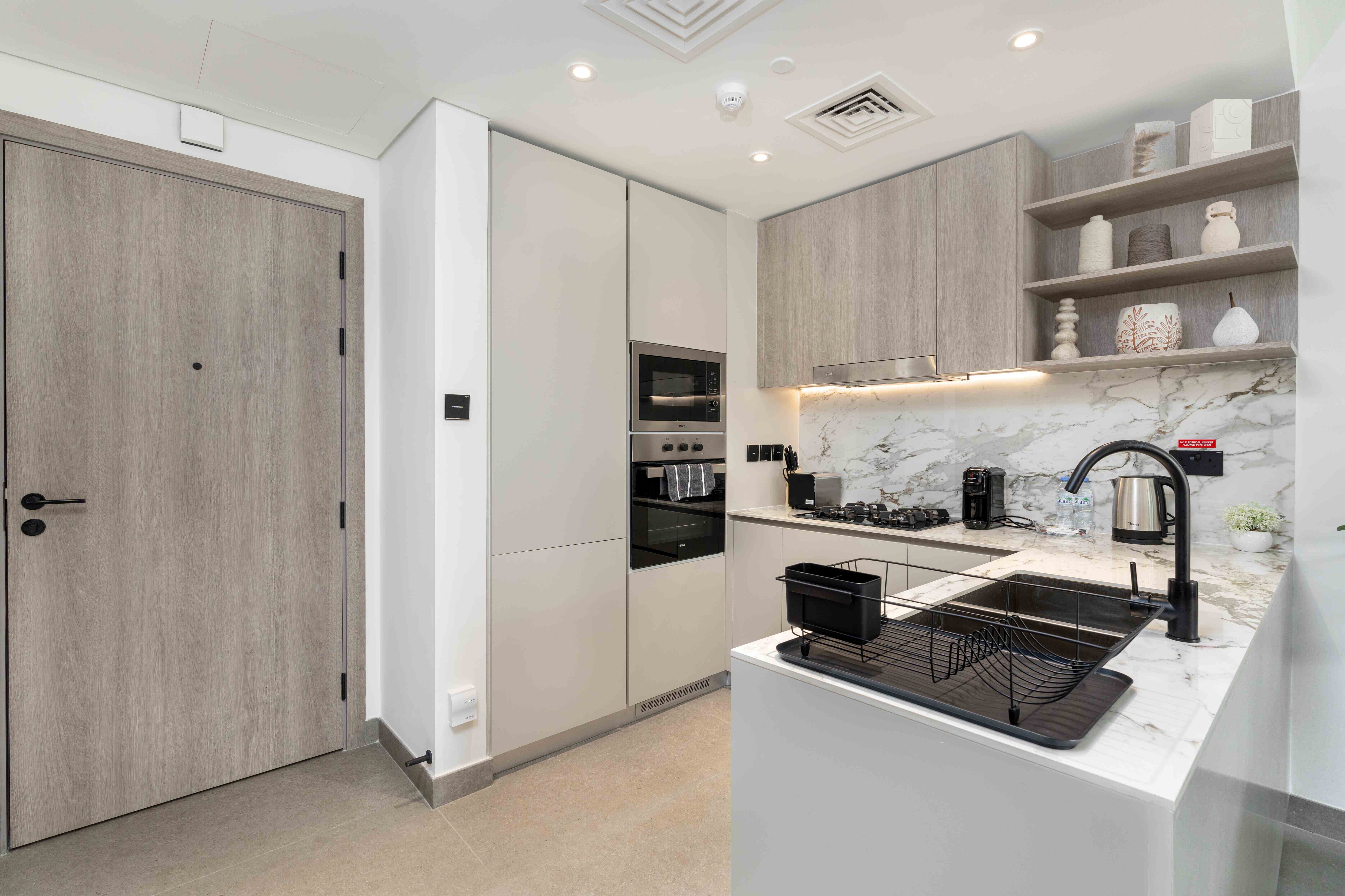 Fully Equipped Kitchen: Sleek and modern, complete with high-end appliances and all essentials for home cooking.
