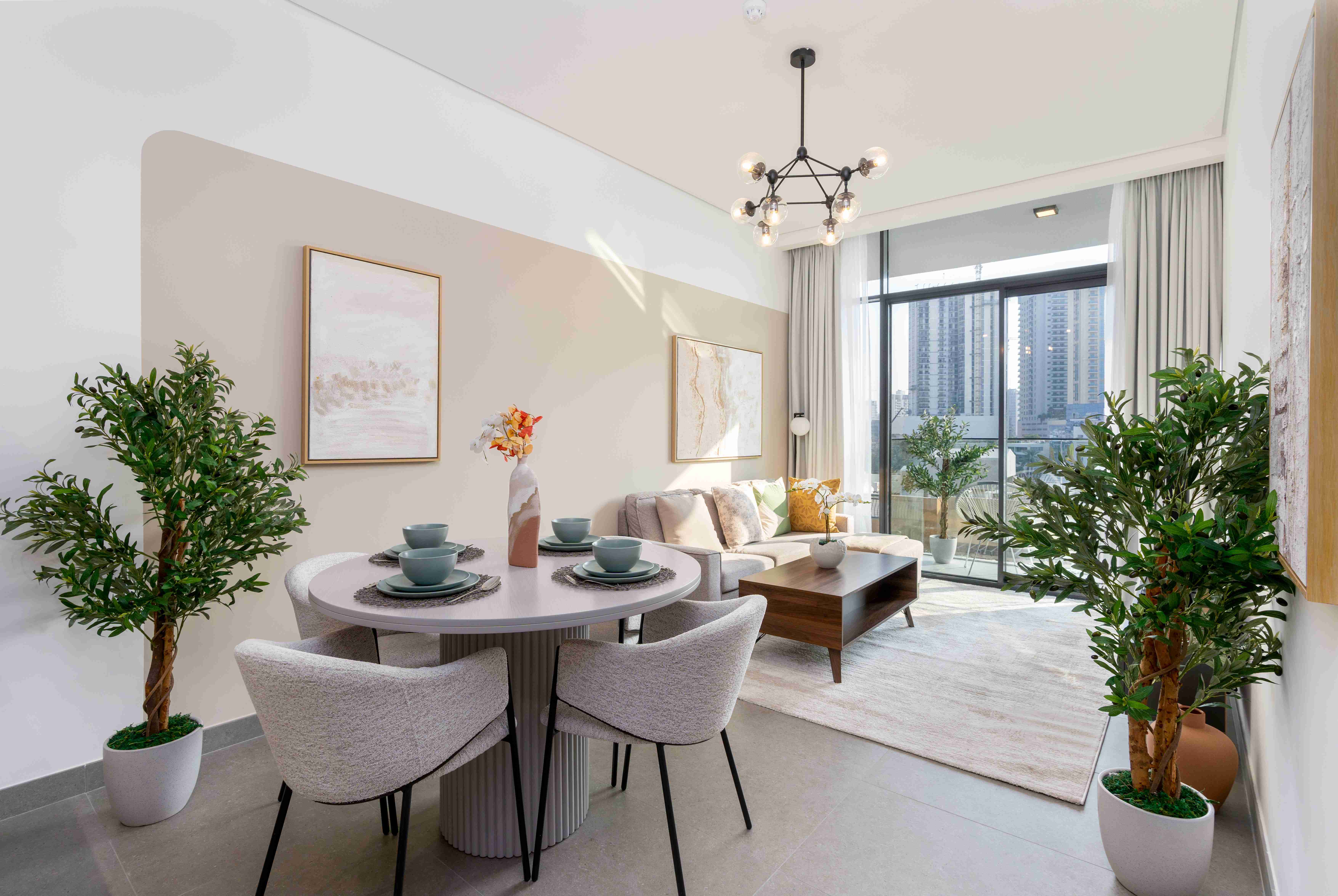 Spacious Living Area: Bright and airy space with contemporary furnishings and a cozy ambiance.