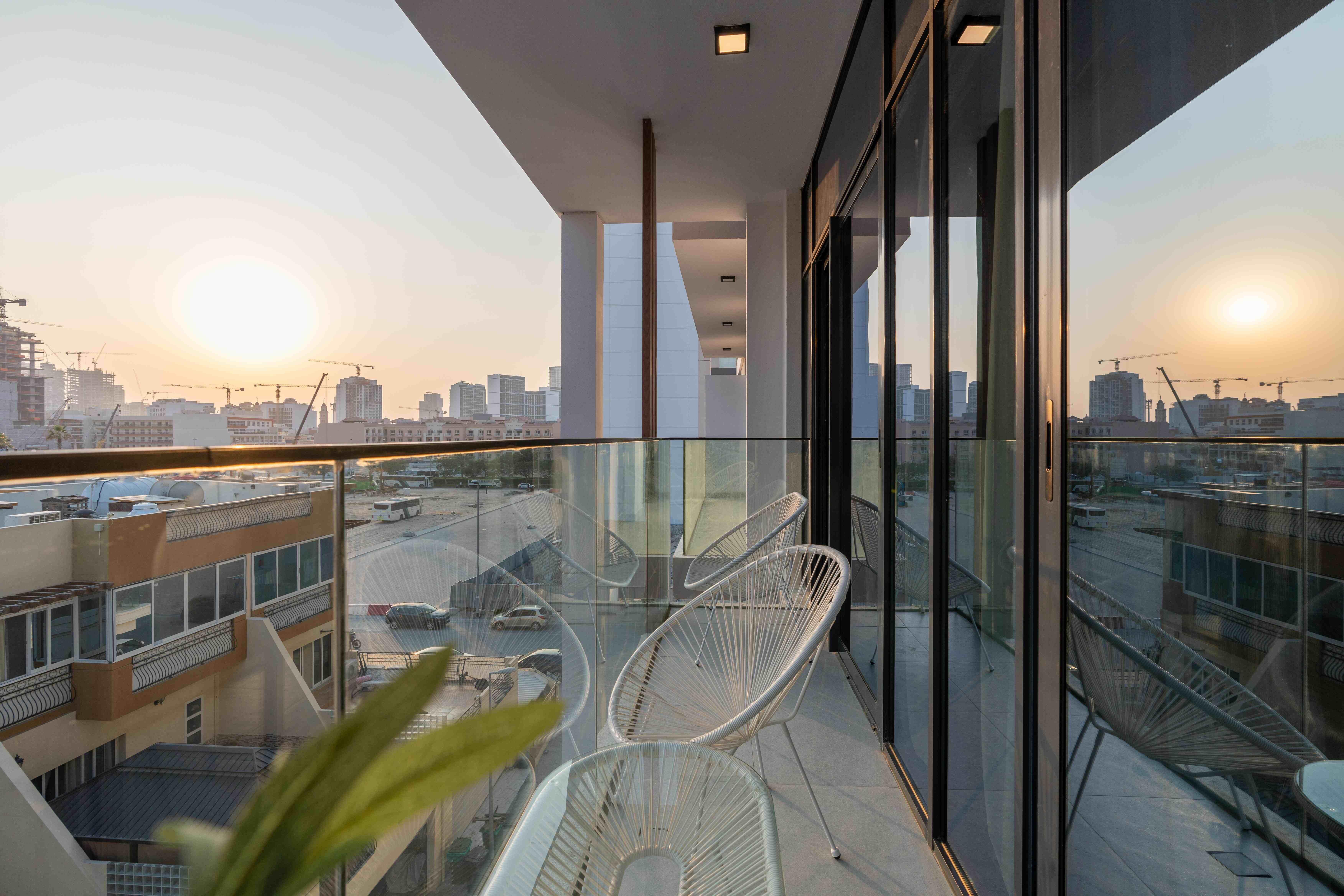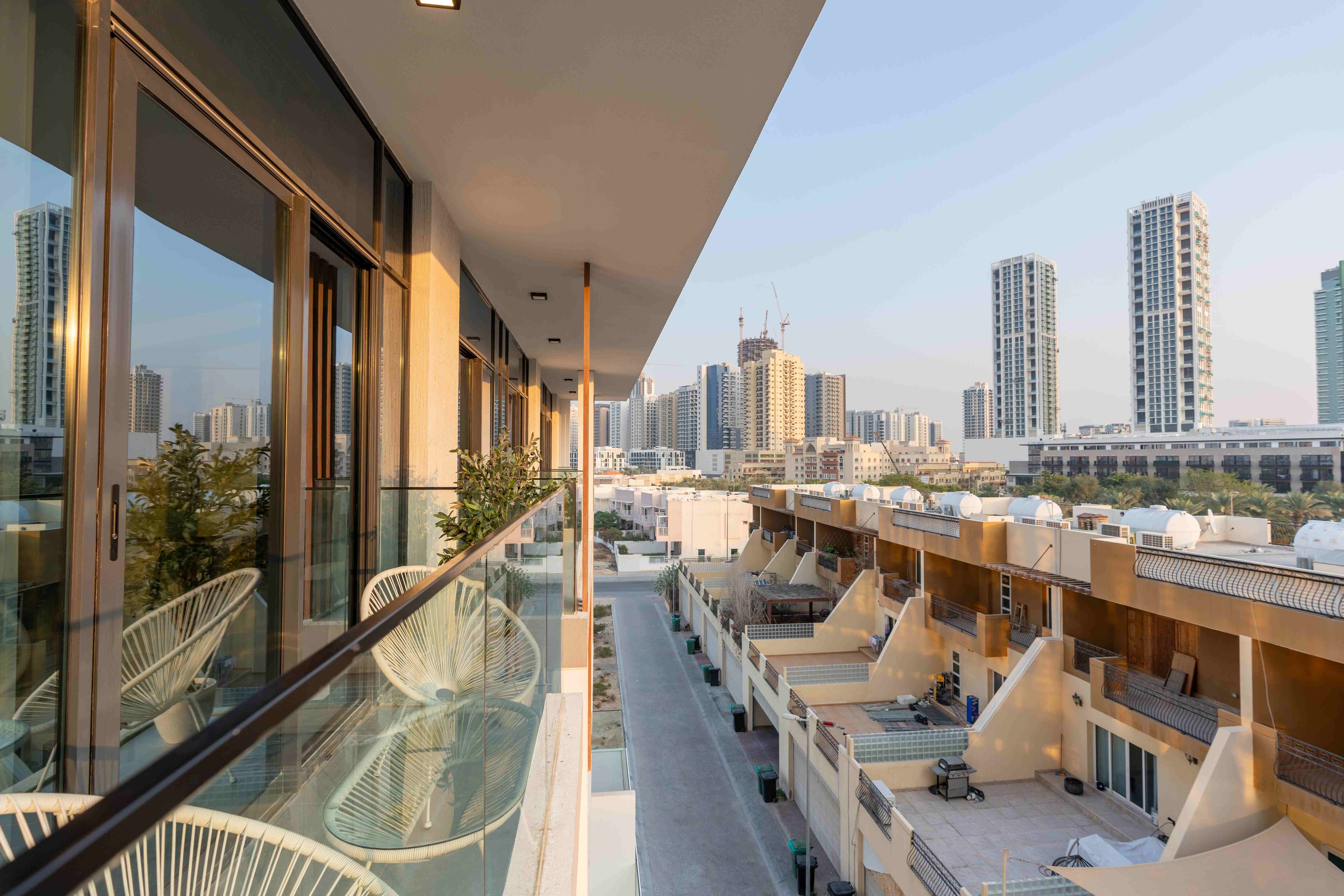 Balcony: A private outdoor space to unwind with views of the peaceful JVC neighborhood.