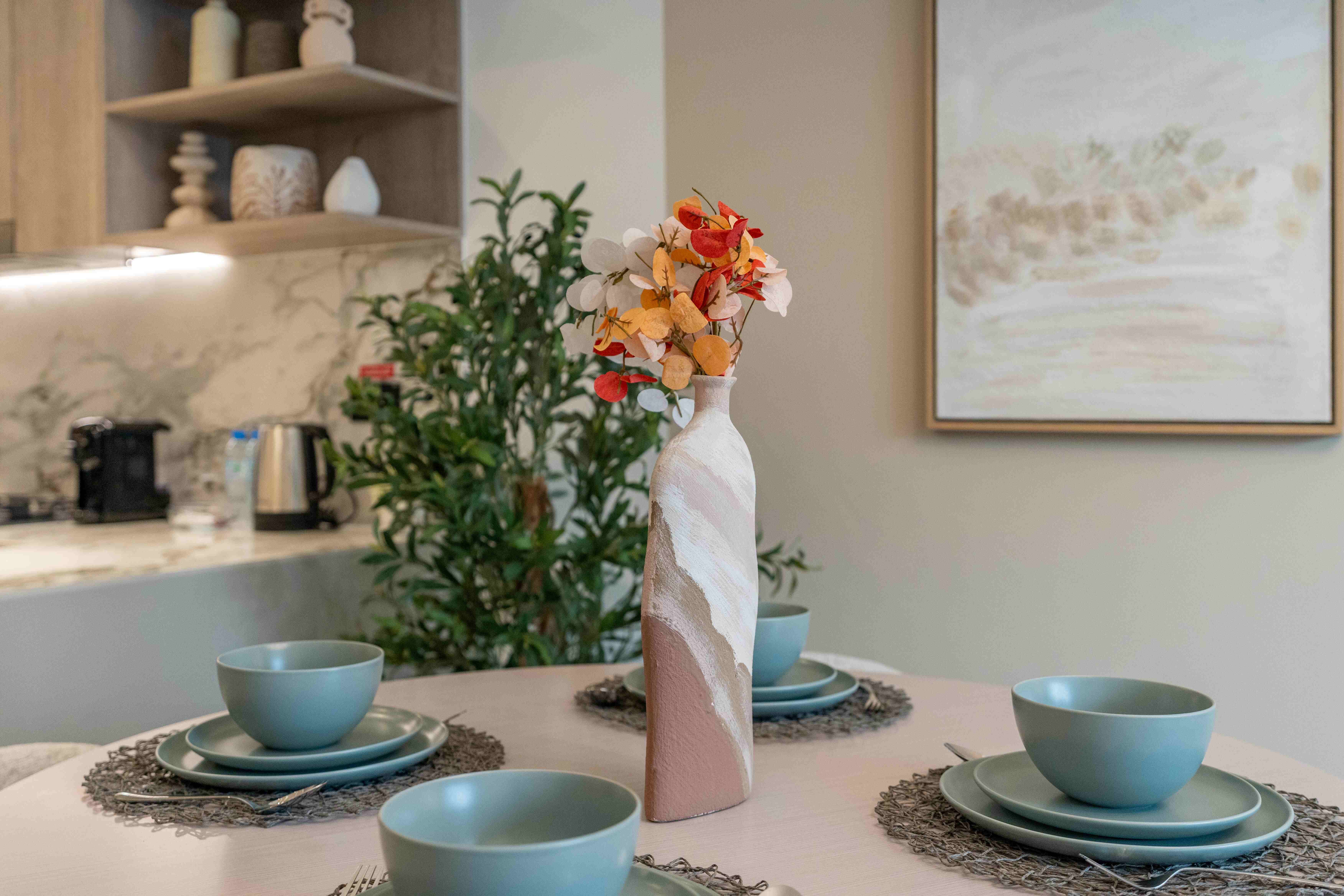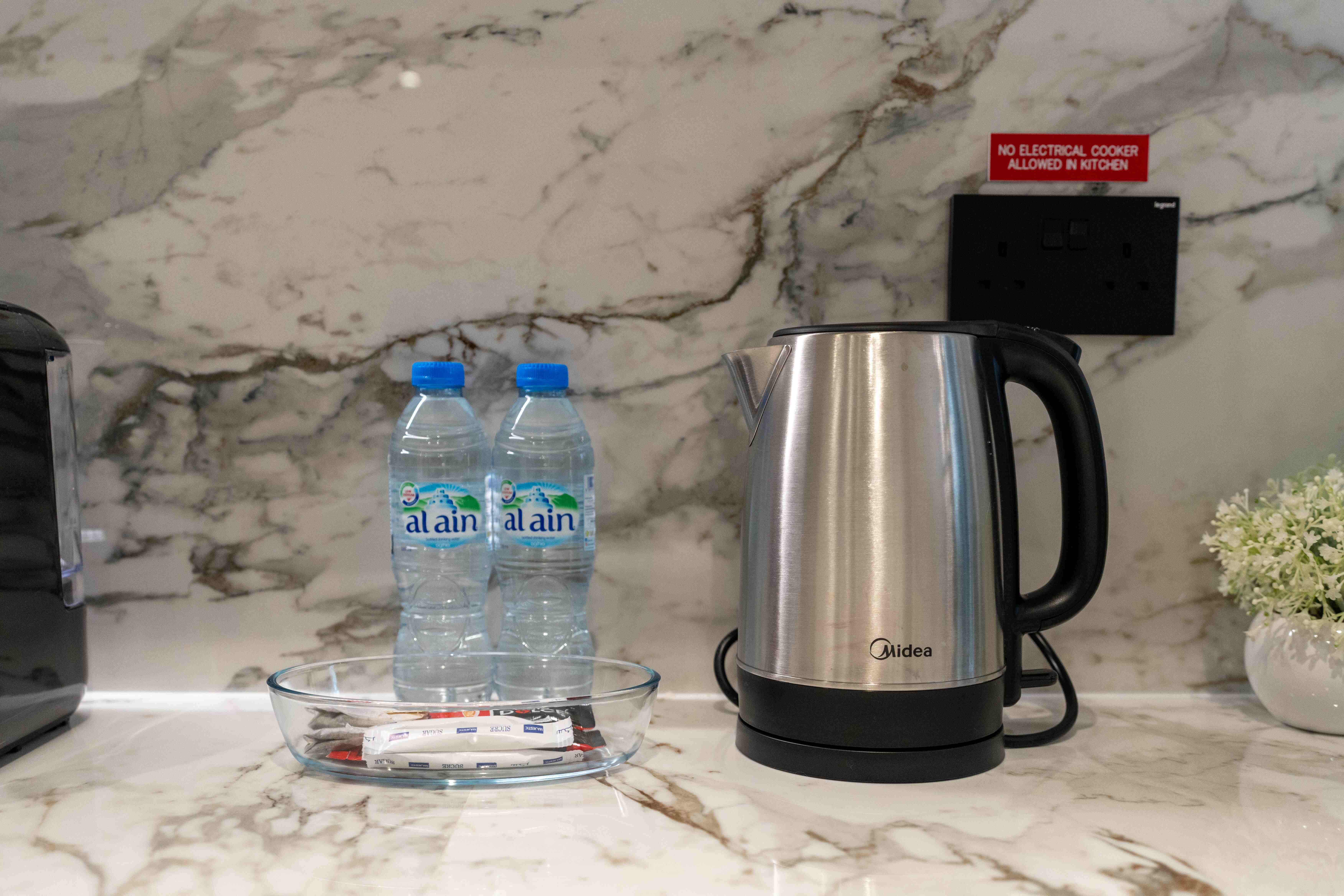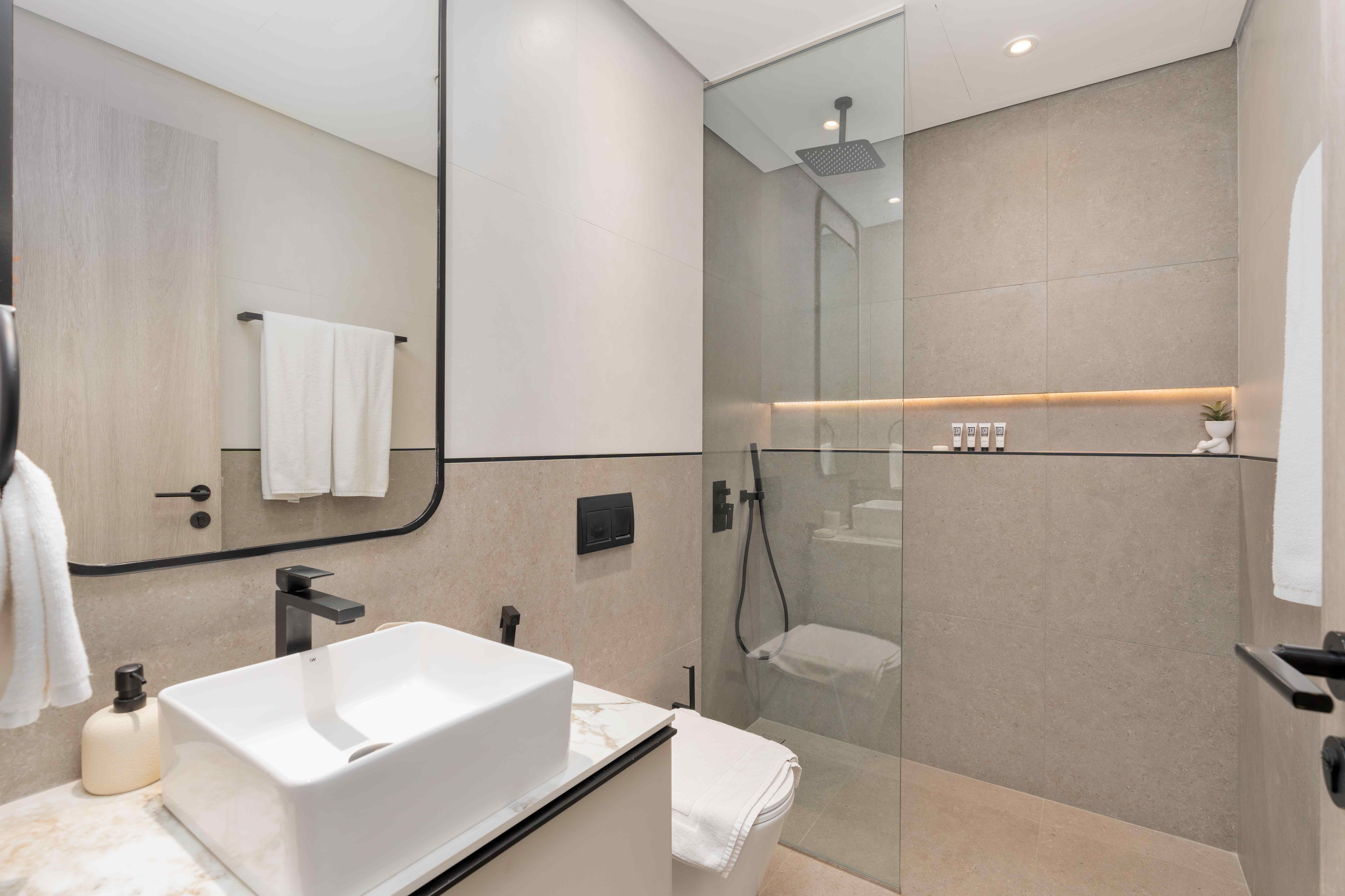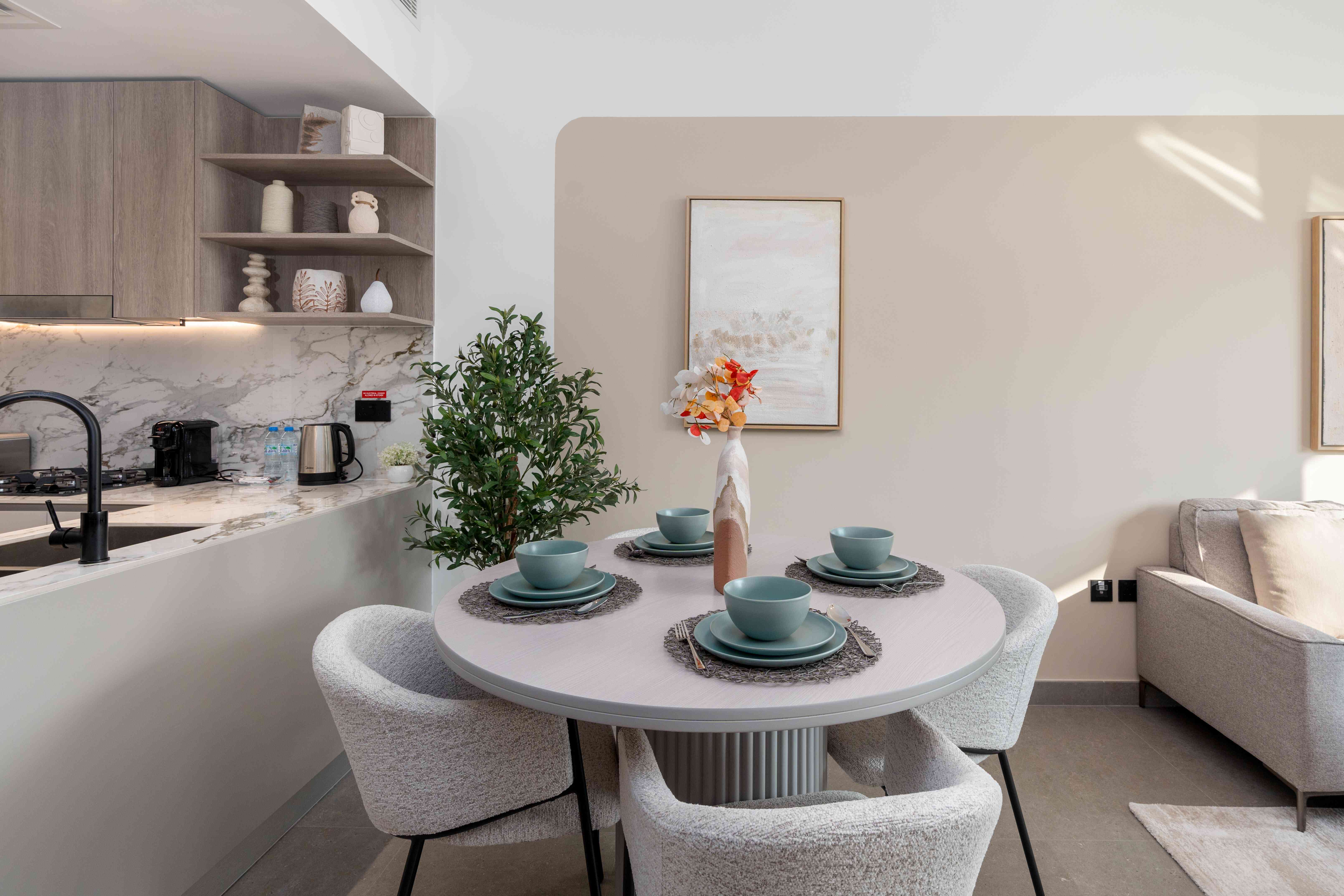 Fully Equipped Kitchen: Sleek and modern, complete with high-end appliances and all essentials for home cooking.